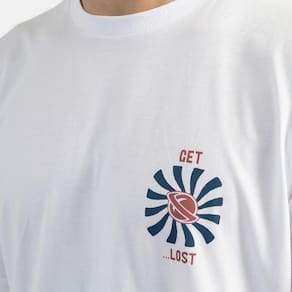 Camiseta Lost feita em meia malha 30.1, estampa frente e costas e etiquetas personalizadas.