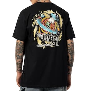 Camiseta Lost feita em meia malha pentaada 30.1, estampa no peito e costas e etiquetas personalizadas.