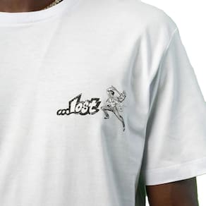 Camiseta Lost feita em meia malha 30.1, estampa frontal e etiquetas personalizadas.