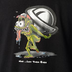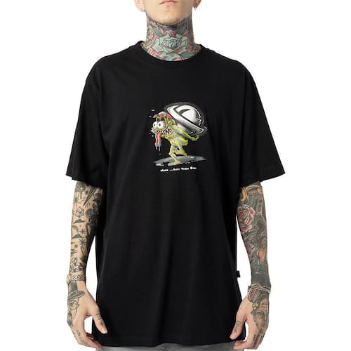 Camiseta Lost feita em meia malha penteada 30.1, estampa frontal e etiquetas personalizadas.