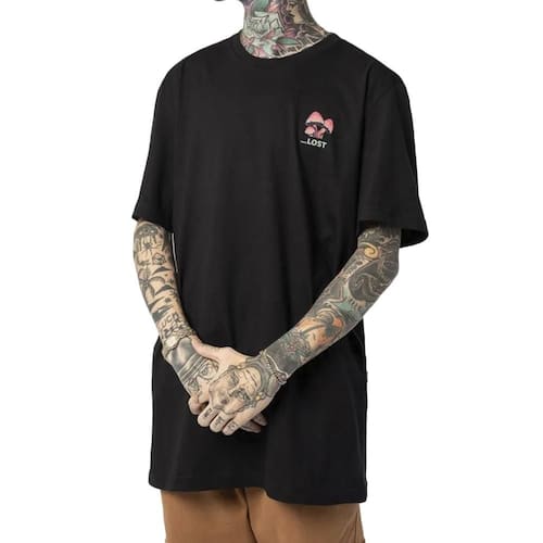 Camiseta Lost básica de manga curta, meia malha 30.1, silk frontal, modelagem regular e etiquetas personalizadas.