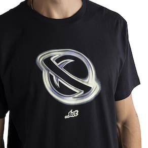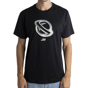 Camiseta Lost em meia malha penteada 30.1, modelagem regular, silk frontal que brilha no escuro e etiquetas personalizadas.