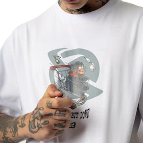 Camiseta Lost feita em meia malha penteada 30.1, estampa frontal e etiquetas personalizadas.