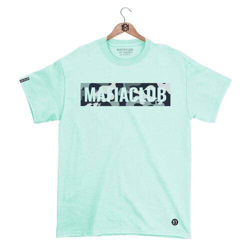 Camiseta Mafia Club Gola Redonda Estampa Camuflada Streetwear fio 30.1 Penteado - Azul Claro - P