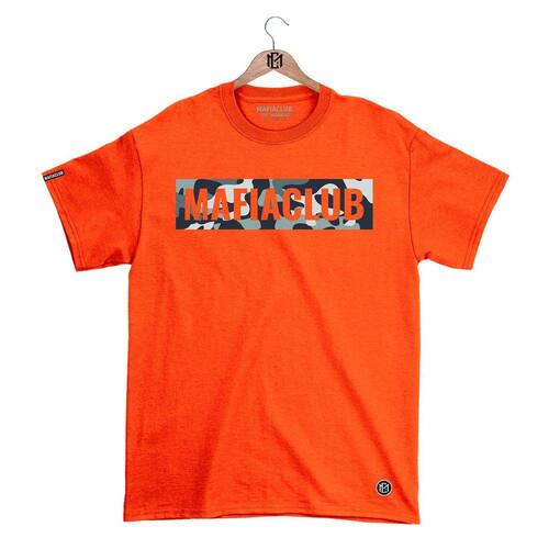 Camiseta Mafia Club Gola Redonda Estampa Camuflada Streetwear fio 30.1 Penteado - Laranja - G