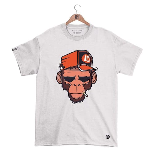 Camiseta Máfia club Gola Redonda Estampa MONKEY Streetwear fio 30.1 Penteado. - Branco - G
