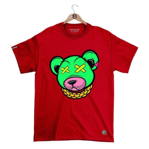 Camiseta Máfia club Gola Redonda Estampa URSO XX 3 Streetwear fio 30.1 Penteado. - Vermelho - GG