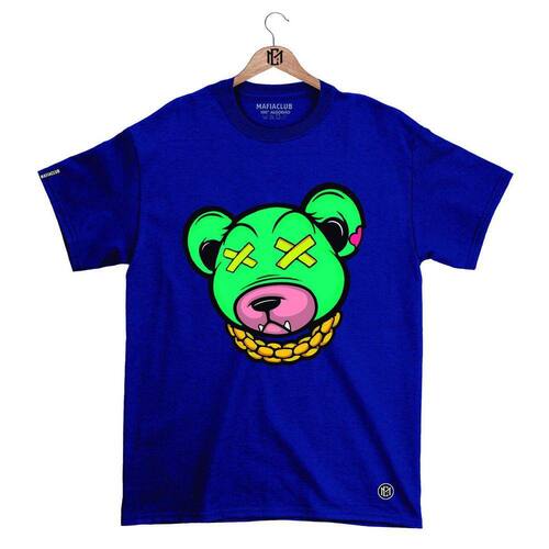 Camiseta Máfia club Gola Redonda Estampa URSO XX 3 Streetwear fio 30.1 Penteado. - Azul Petróleo - XG