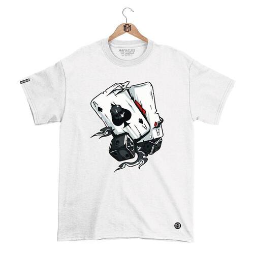 Camiseta Mafiaclub Gola Redonda Estampa BARALHO Streetwear fio 30.1 Penteado. - Cinza - XG
