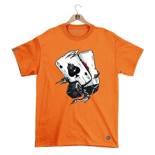Camiseta Mafiaclub Gola Redonda Estampa BARALHO Streetwear fio 30.1 Penteado. - Laranja - G