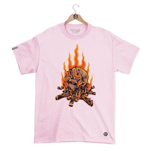 Camiseta Mafiaclub Gola Redonda Estampa CAVEIRA FOGO Streetwear fio 30.1 Penteado - Rosa - GG