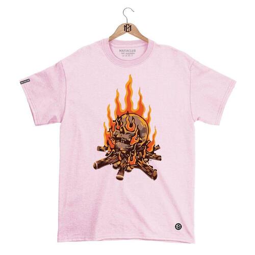 Camiseta Mafiaclub Gola Redonda Estampa CAVEIRA FOGO Streetwear fio 30.1 Penteado - Rosa - P