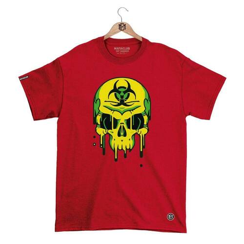 Camiseta Mafiaclub Gola Redonda Estampa CAVEIRA RADIOATIVA Streetwear fio 30.1 Penteado - Vermelho - GG