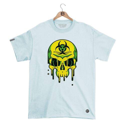 Camiseta Mafiaclub Gola Redonda Estampa CAVEIRA RADIOATIVA Streetwear fio 30.1 Penteado - Azul Claro - GG