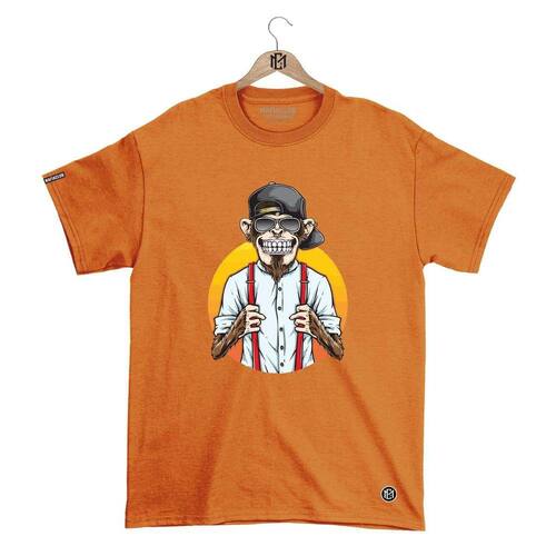 Camiseta Mafiaclub Gola Redonda Estampa MONKEY ll Streetwear fio 30.1 Penteado - Laranja - GG