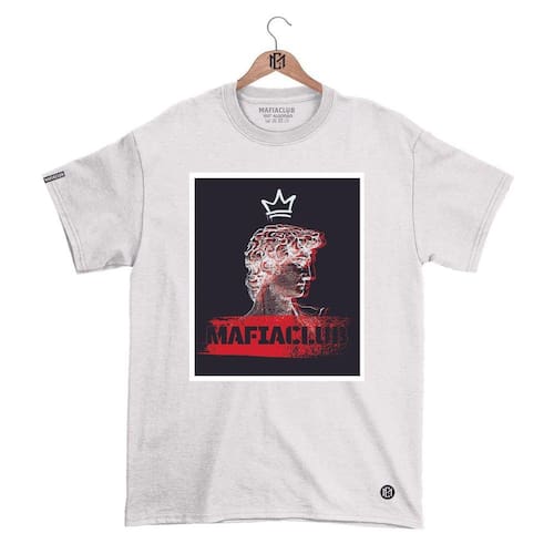 Camiseta Máfiaclub Gola Redonda Estampa QUADRO MÁFIA Streetwear fio 30.1 Penteado. - Branco - GG