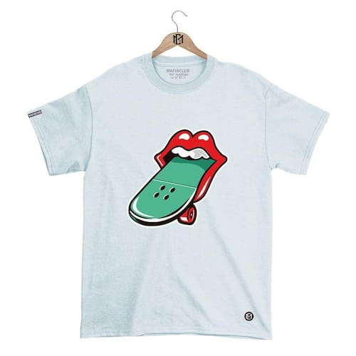 Camiseta Mafiaclub Gola Redonda Estampa SKATE Streetwear fio 30.1 Penteado - Azul Claro - P