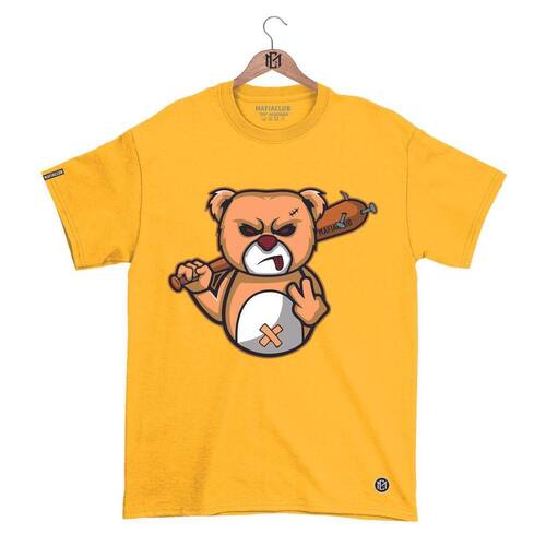 Camiseta Máfiaclub Gola Redonda Estampa URSO BRABO Streetwear fio 30.1 Penteado. - Amarelo - P