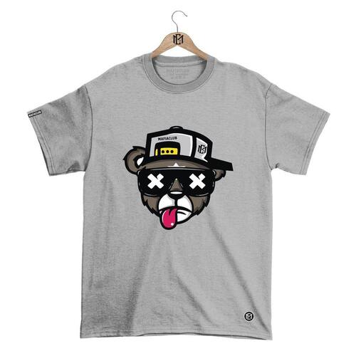 Camiseta Mafiaclub Gola Redonda Estampa URSO l Streetwear fio 30.1 Penteado - Cinza - G