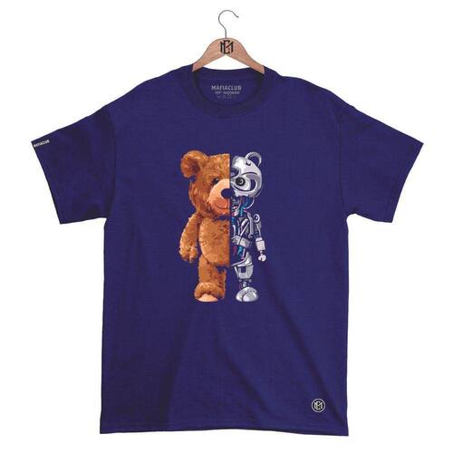 Camiseta Máfiaclub Gola Redonda Estampa URSO ROBO Streetwear fio 30.1 Penteado. - Azul Petróleo - GG