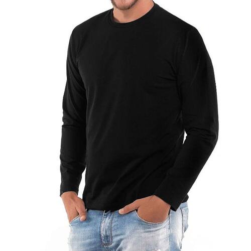 Camiseta Manga Longa Masculino 100% Algodão C15 - Preto - M