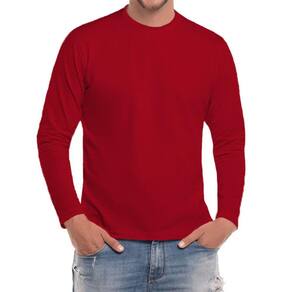 Camiseta Manga Longa Masculino 100% Algodão C15 - Vermelho - P
