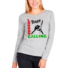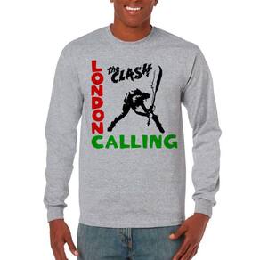 Camiseta Manga longa The Clash London Calling punk rock clássico, exclusiva, unissex - Cinza - P