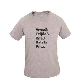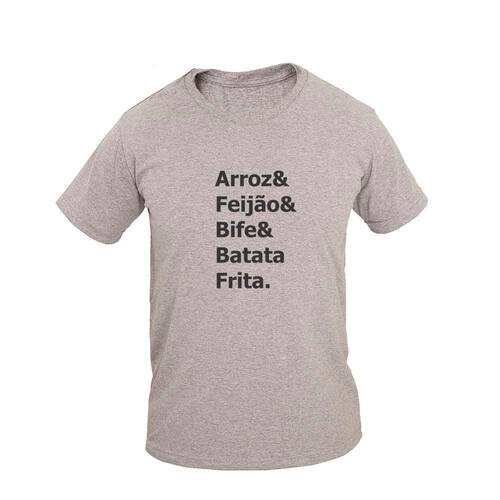 Camiseta Masculina Algodão Manga Curta Arroz Feijão Casual - Cinza - EG