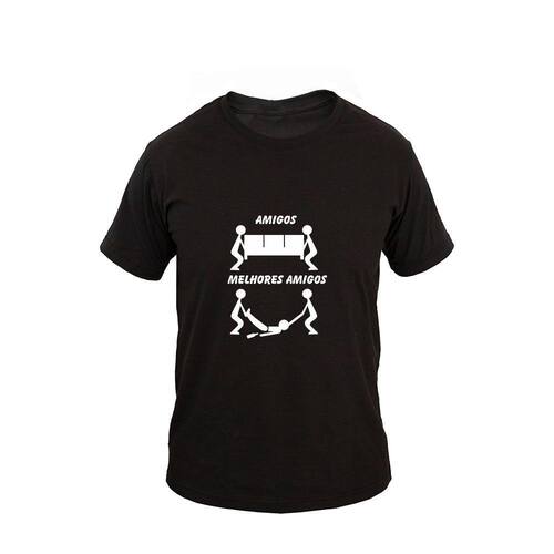 Camiseta Masculina Algodão Manga Curta Melhores Amigos - Preto - M