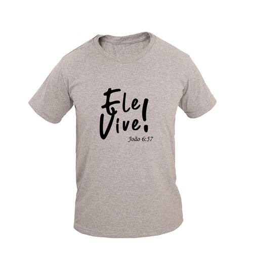 Camiseta Masculina Casual Algodão Manga Curta Ele Vive - Cinza - M