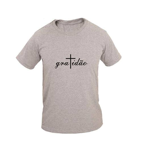 Camiseta Masculina Casual Algodão Manga Curta Gratidão - Cinza - M