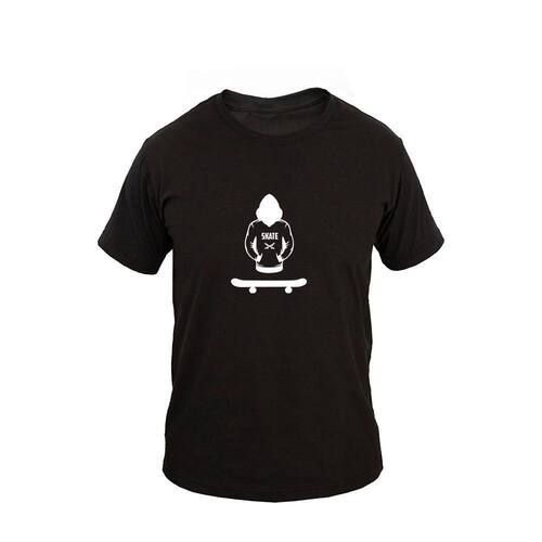 Camiseta Masculina Casual Algodão Manga Curta Skate Board - Preto - EG