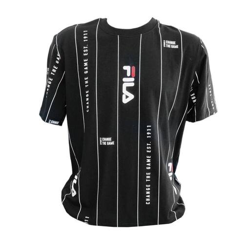 Camiseta masculina confeccionada em malha de poliéster com textura quadriculada. A modelagem raglan com manga curta proporciona maior liberdade de movimentos. As laterais deslocadas para frente e as costuras sem atrito com o corpo garantem maior conforto durante o uso. Possui gola careca, cobregola pespontado, e maxi estampa Fila Letter Outline em alto relevo centralizada na parte frontal.