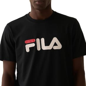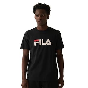 Camiseta masculina feita em algodão com certificações OEKO-TEX e BCI. Possui modelagem regular, gola em ribana, barra com fendas laterais e pesponto duplo nos acabamentos. A estampa FILA Linear em silk na parte frontal destaca o logo da marca, unindo sustentabilidade e estilo básico.