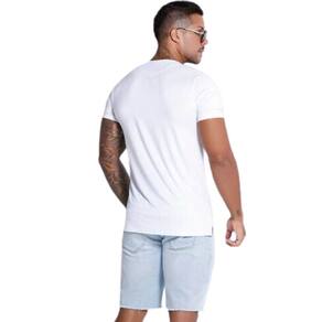 Modelagem: A camiseta possui corte ajustado ao corpo, com gola V que valoriza o pescoço e proporciona um visual moderno e elegante.