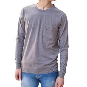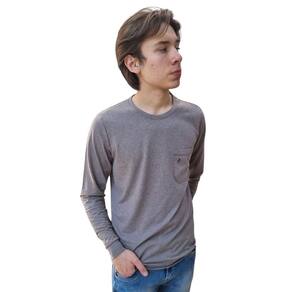 Camiseta Masculina Manga Longa Punho Bolso Básica Casual - G1 - Cinza
