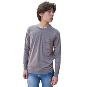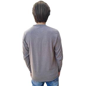 Camiseta Masculina Manga Longa Punho Bolso Básica Casual - M - Cinza