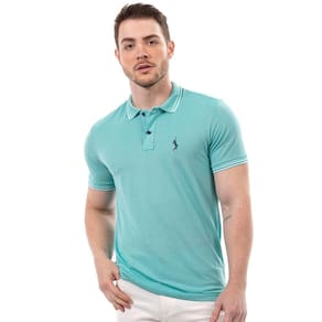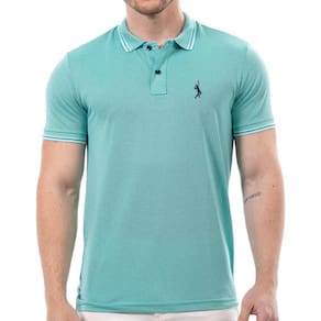 Camiseta Masculina Polo Plus Size John Pull Manga Curta Moda - Azul Turquesa - G1
