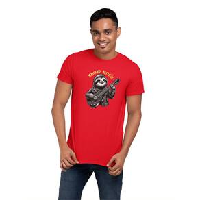 Esta camiseta é uma celebração do ritmo relaxado da preguiça combinado com o poder do rock! Com um bicho-preguiça tocando um 'rock lento', você adiciona um toque de humor e irreverência ao seu estilo. Vista esta camiseta e entre no groove tranquilo. O ritmo pode ser lento, mas o slow rock dos anos 70,80 e 90 prevalecem até hoje!