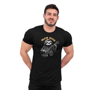Camiseta Masculina Slow Rock Songs Bicho Preguiça Guitarra