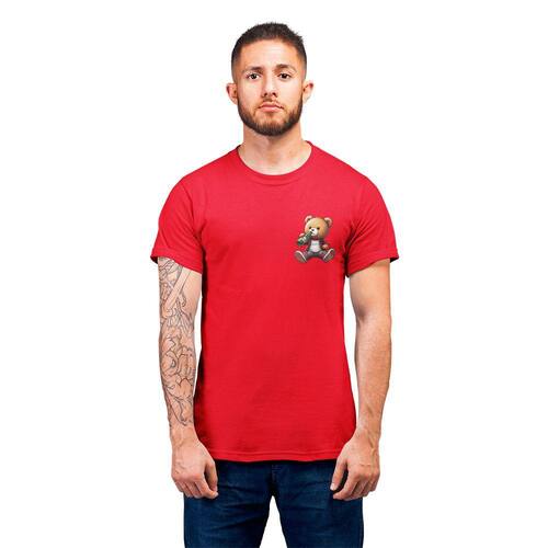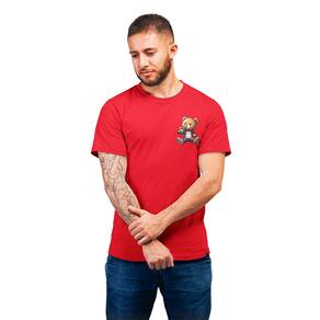 Camiseta Masculina Ursinho Pelúcia Estiloso Bebendo Cerveja - Vermelho - GG
