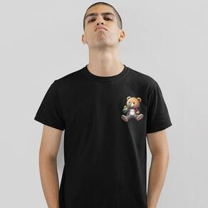 Esta camiseta é a definição de ursinho amoroso com um toque de rebeldia!