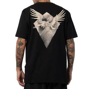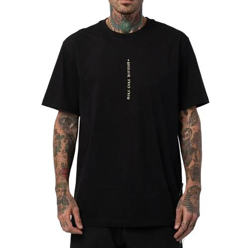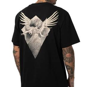 Camiseta Mcd feita em modelagem regular, estampa frontal espada silk more core division, estampa costas grande silk pipa caveira anja, etiqueta bandeira embutida na lateral, reforço de gola em ribana e tag personalizado MCD.