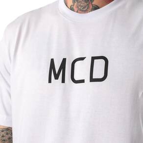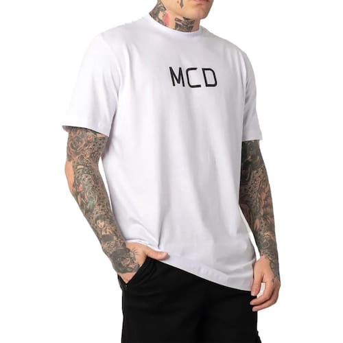 Camiseta MCD feita em malha penteada 30.1, estampa frontal e etiquetas personalizadas.