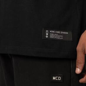 Camiseta Mcd feita em modelagem regular, estampa frontal tinta metalizada dourada + silk à base dágua, reforço de gola, etiqueta bandeira embutida na lateral e tag personalizado MCD.