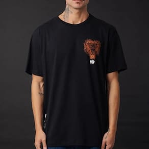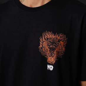Camiseta Mcd feita em modelagem regular, estampa frontal MCD Draco zero toque no peito lateral, reforço de gola, estampa + etiqueta Bailon acima da barra frontal, estampa grande costas Draco e tag personalizado MCD X Bailon.