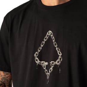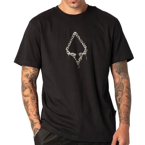 Camiseta Mcd feita em modelagem regular, malha 150g, estampa frontal e etiquetas personalizadas.