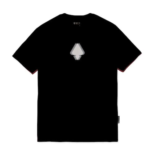 Camiseta MCD feita em malha penteada 30.1, estampa frontal e etiquetas personalizadas.