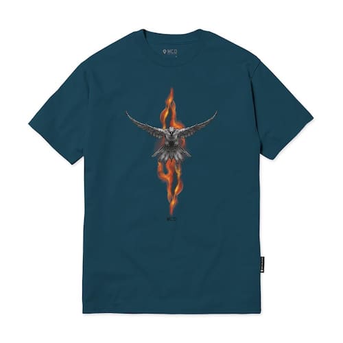 Camiseta MCD feita em malha penteada 30.1, estampa frontal e etiquetas personalizadas.