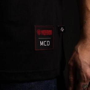 Camiseta MCD feita em meia malha penteada 30.1, estampa frontal e etiquetas personalizadas.